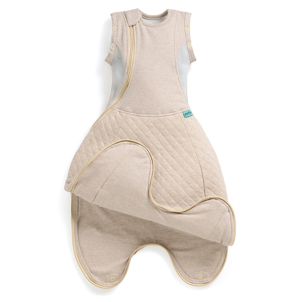 The Purflo Swaddle to Sleep Bag is a safe alternative to using blankets and loose bedding at sleep time and helps keep little ones at a safe temperature all year round.