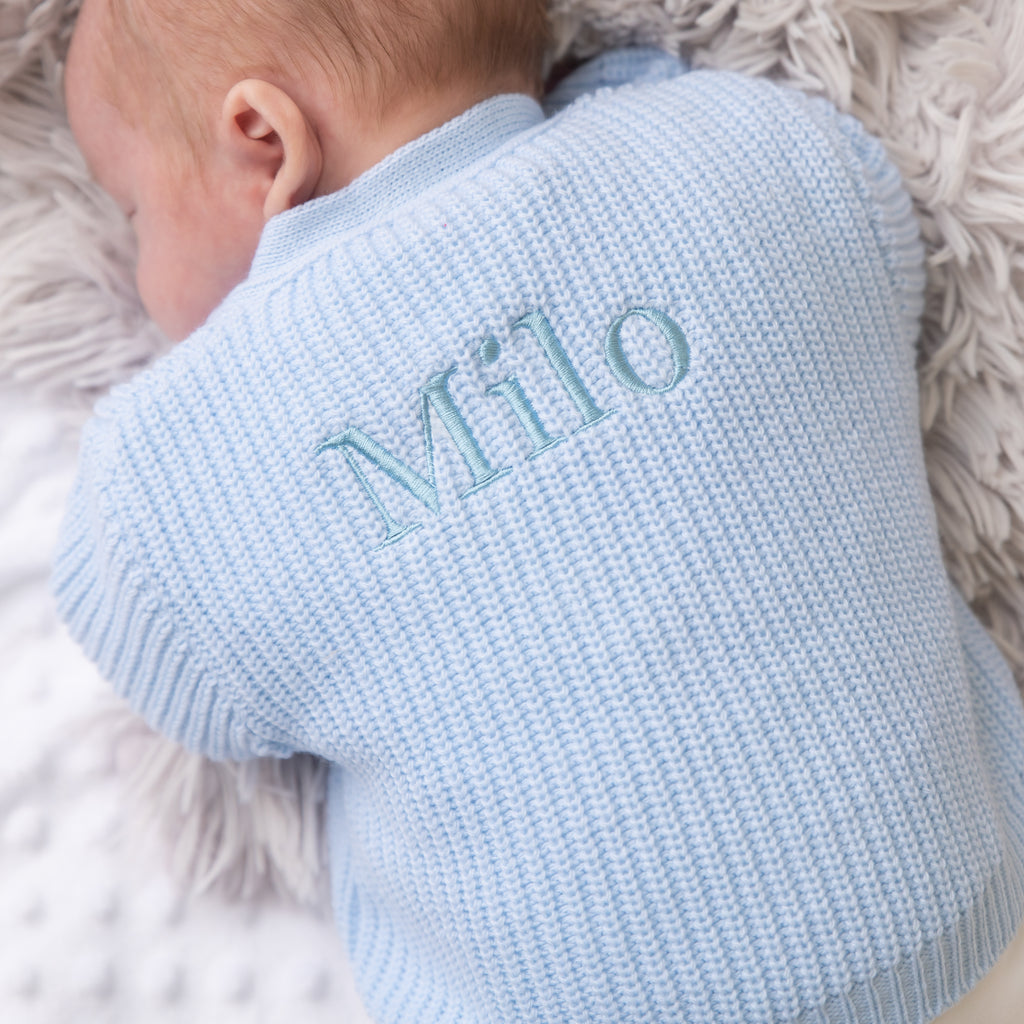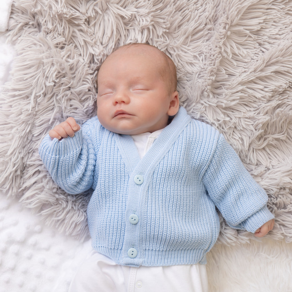 Blue Ribbed Knitted Cardigan