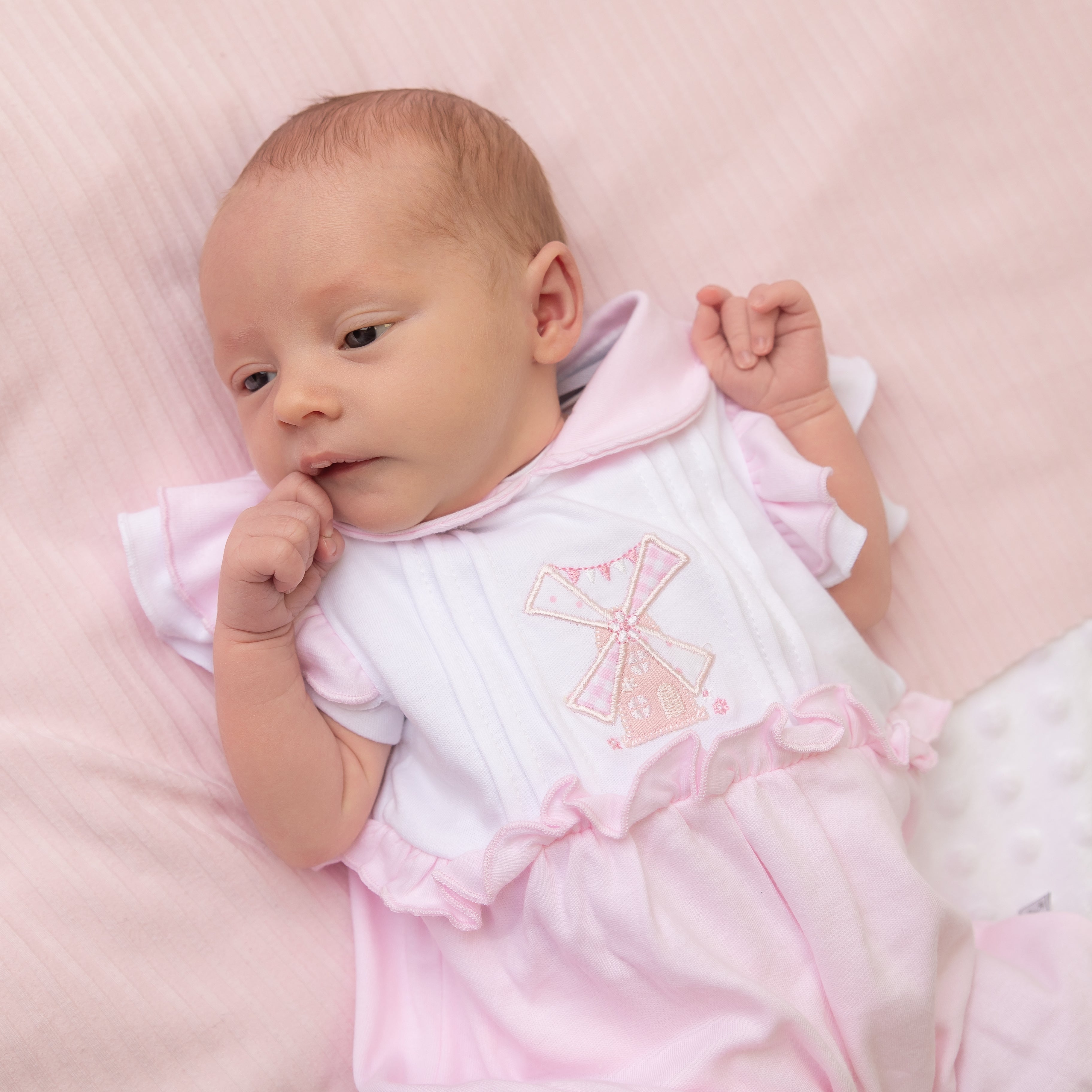 Pink Windmill Ruffle Romper