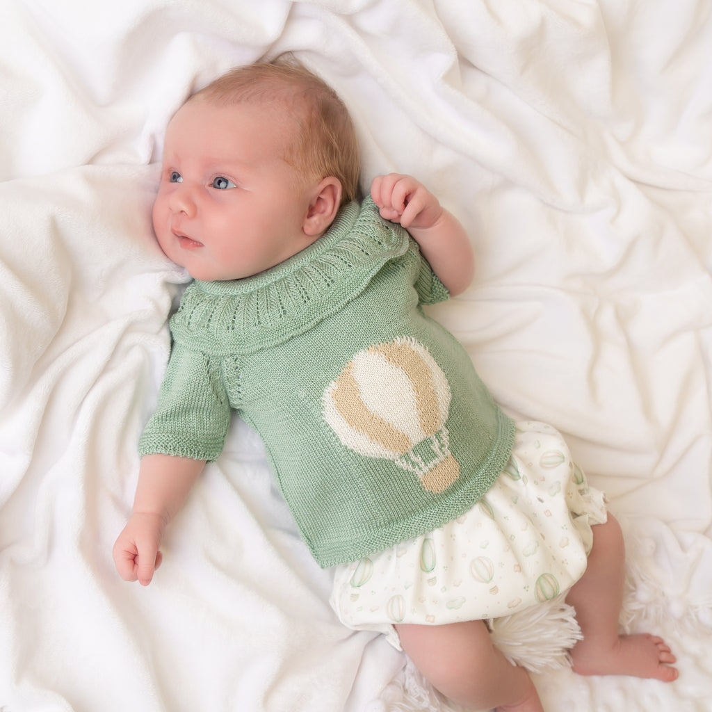 Sage Green Hot Air Balloon Knitted Top & Bloomer Set