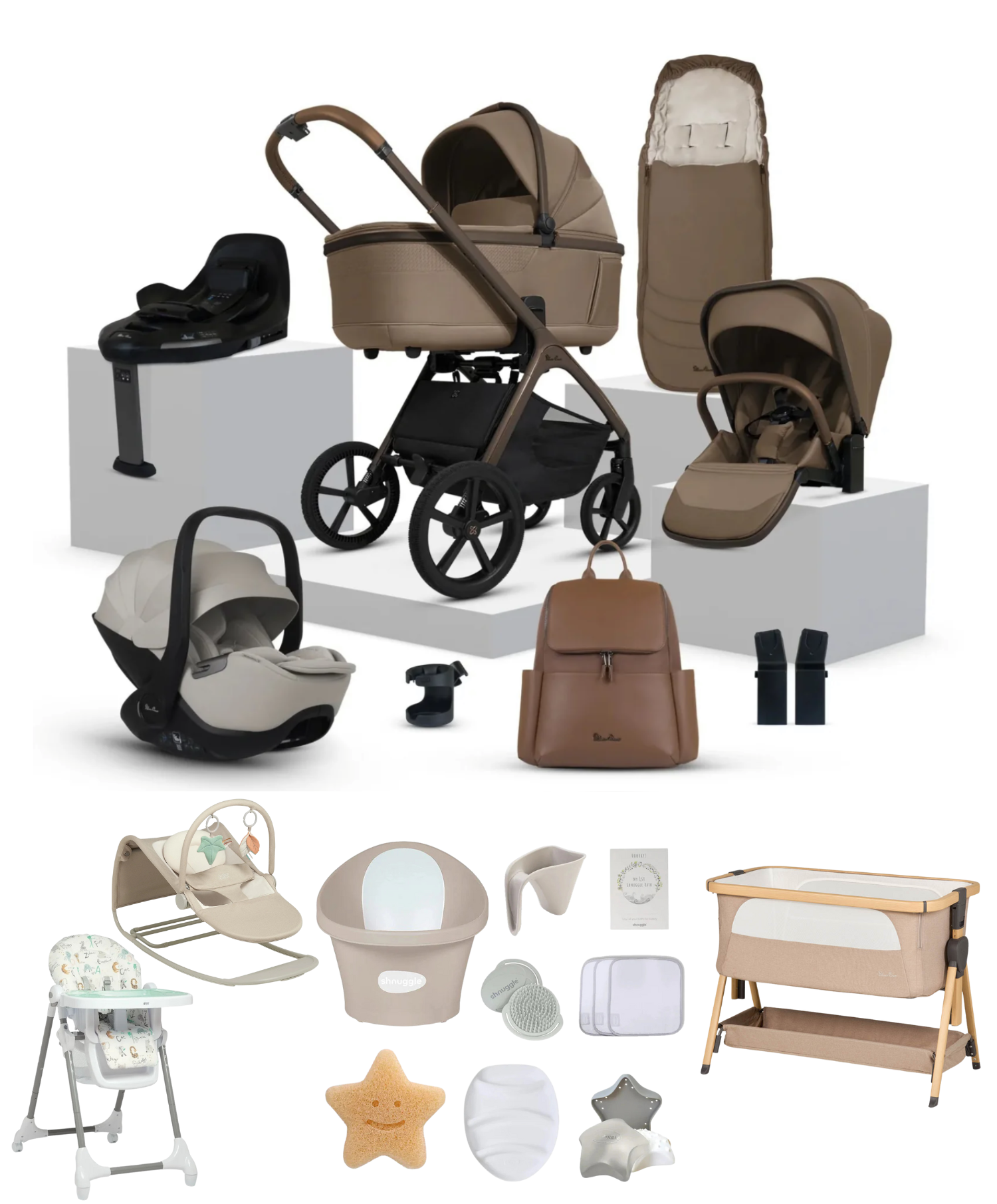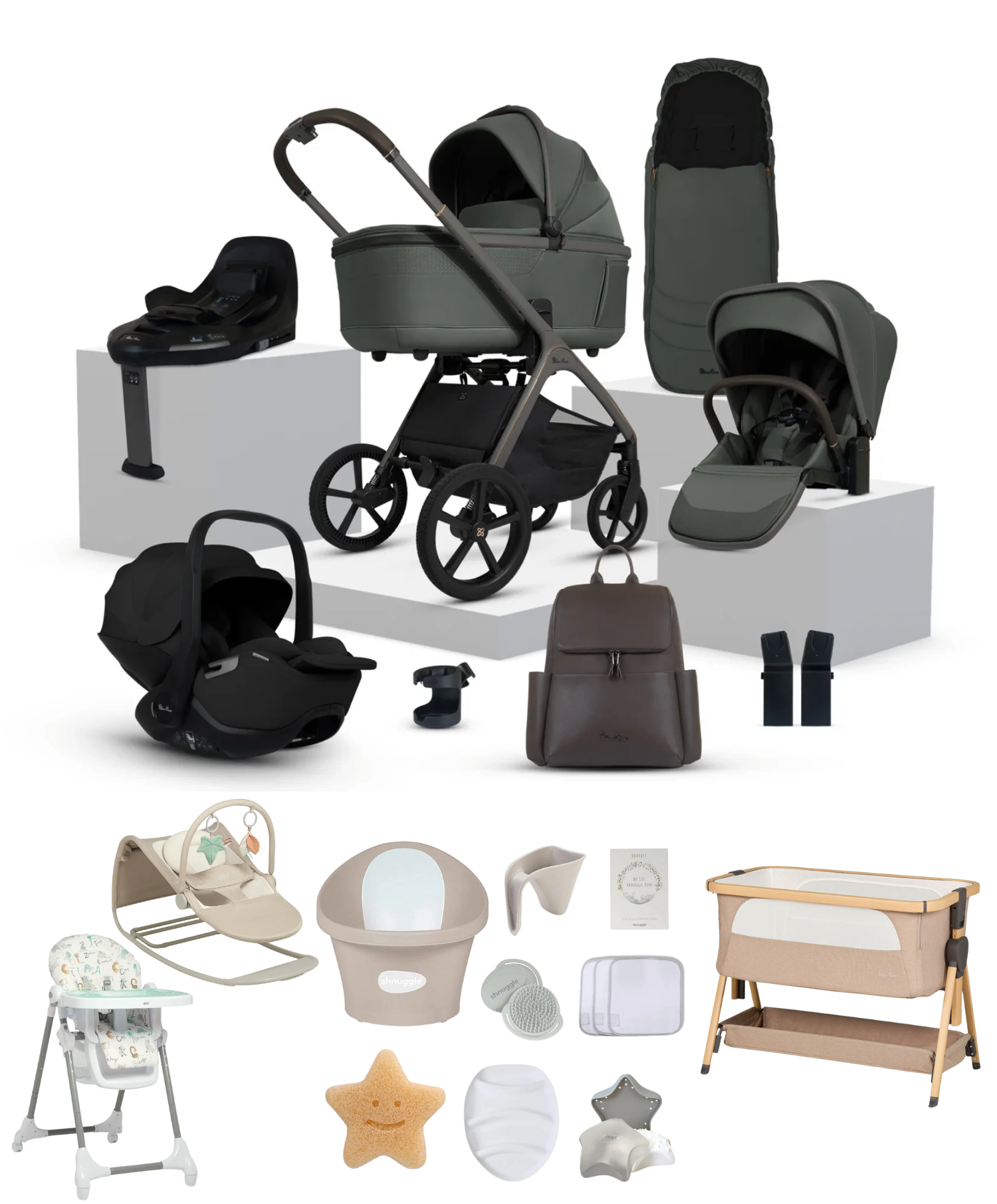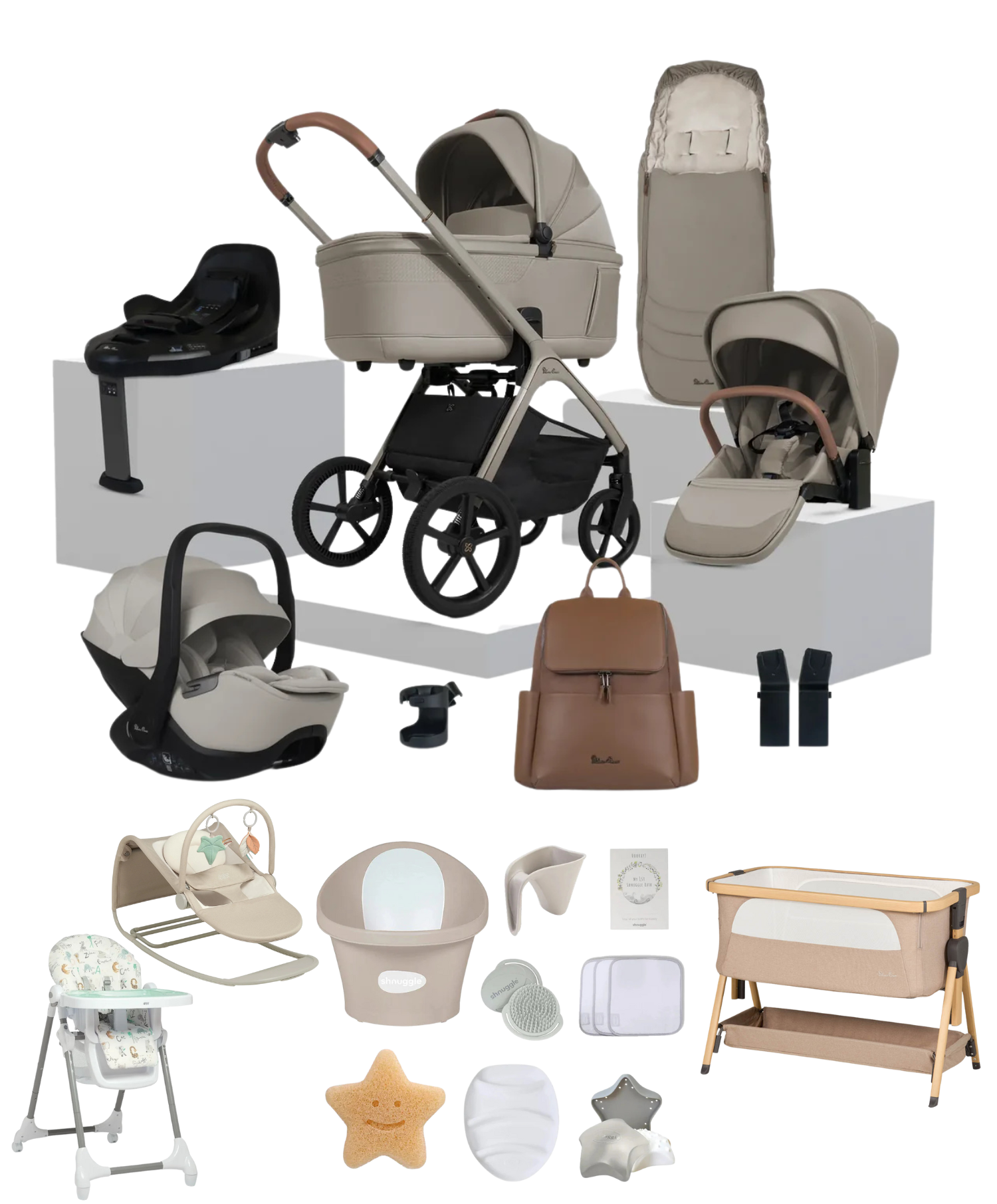 Create a stylish Silver Cross travel system with the Cove Ultimate 360 Car Seat Bundle, including our lie-flat Glide Plus 360 car seat and rotating ISOFIX Base Plus 360.