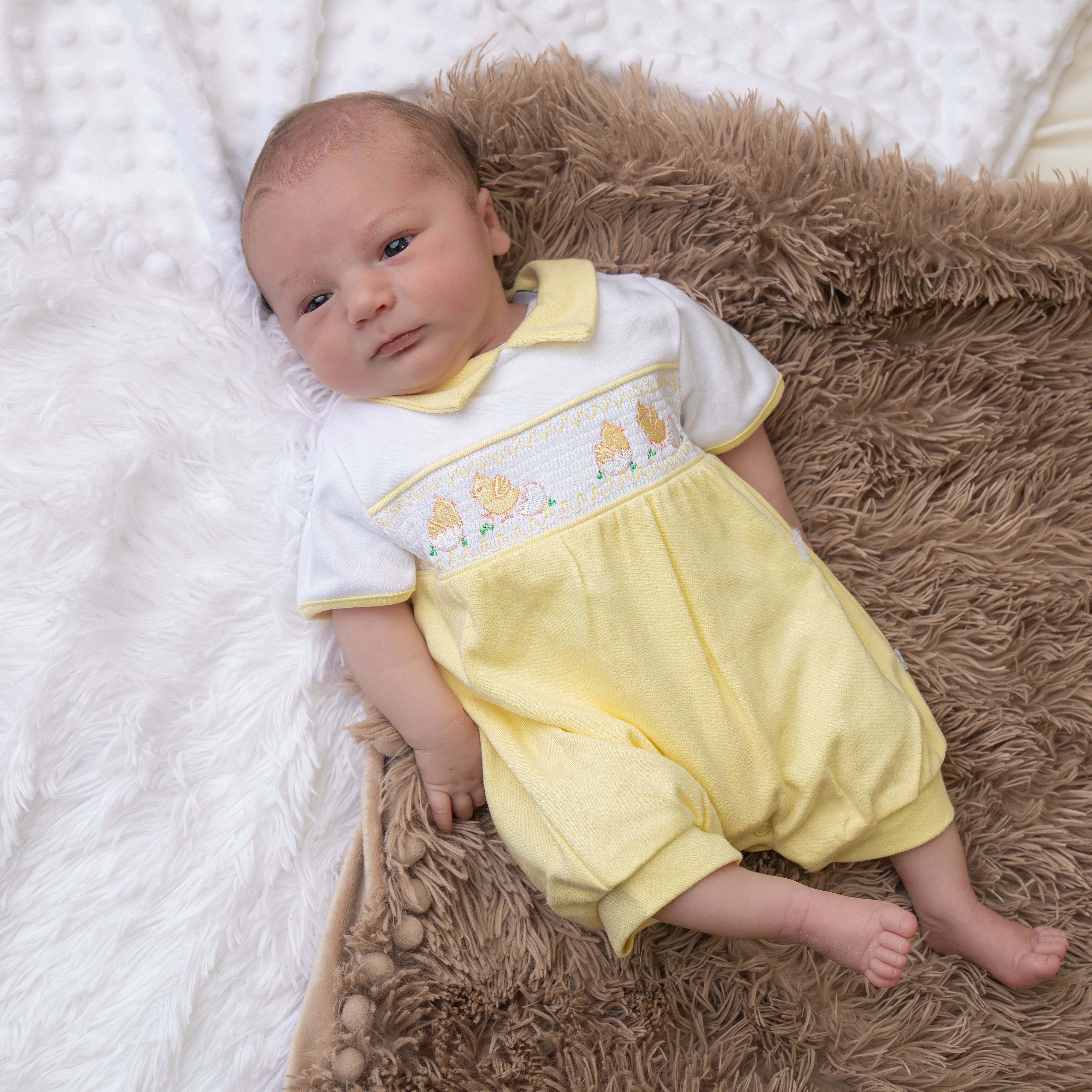 Lemon 'Little Chicks' Smocked Romper