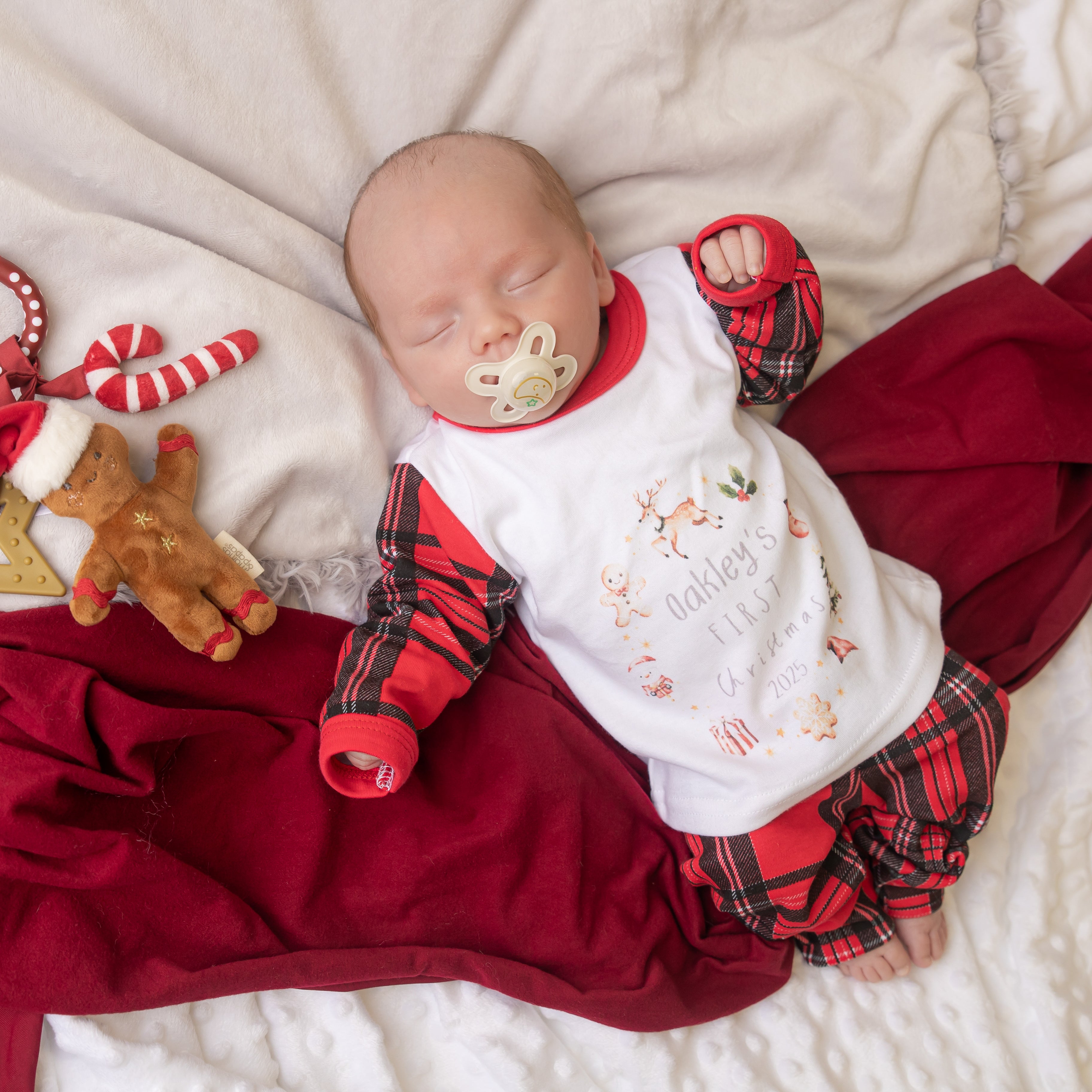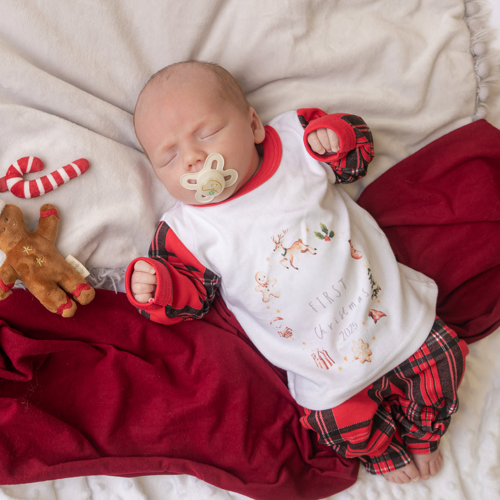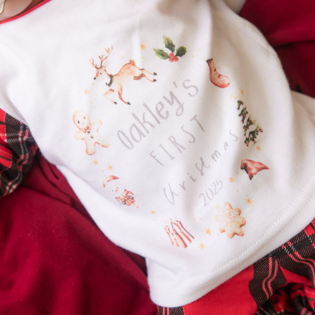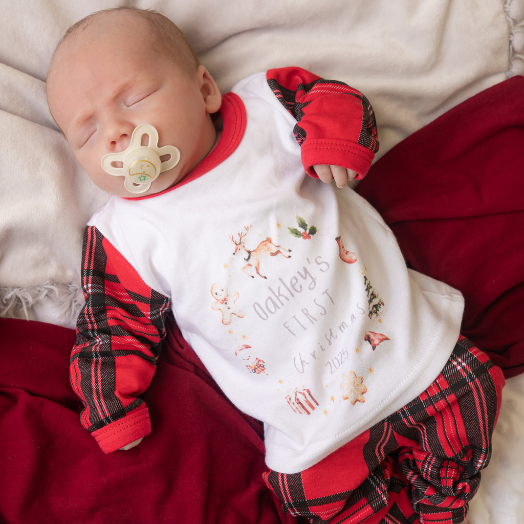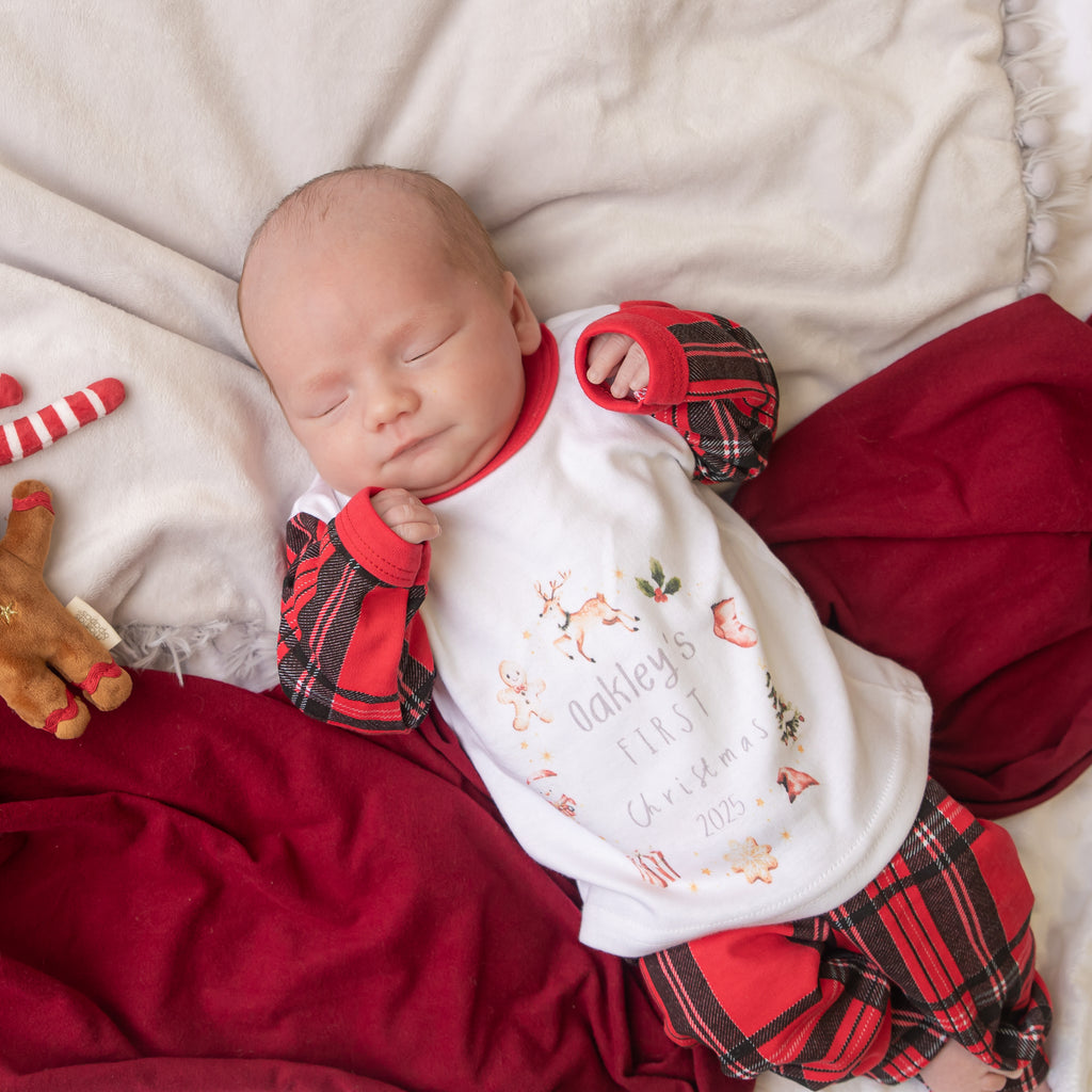 Boys Tartan 'First Christmas' Wreath PJ's Lounge Set