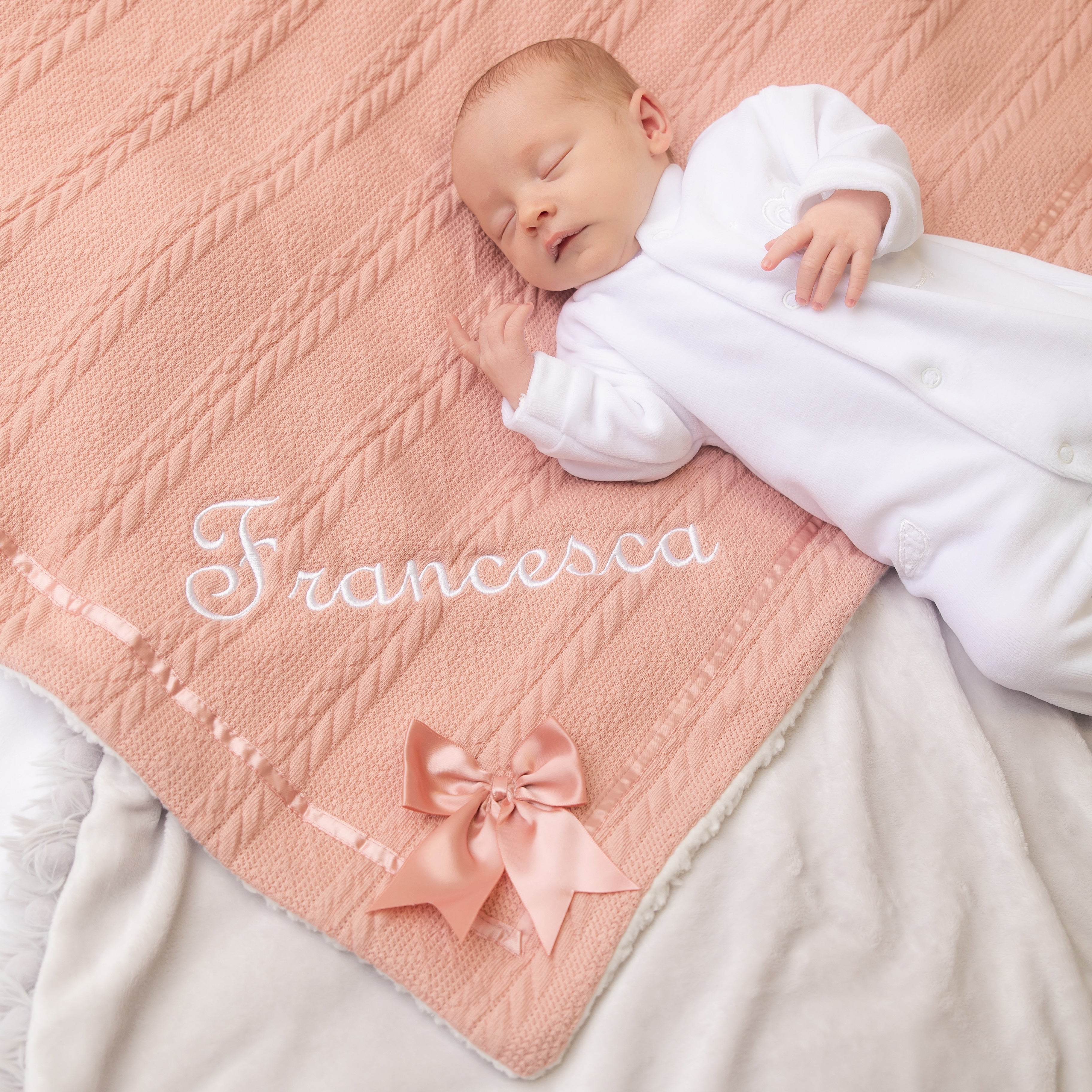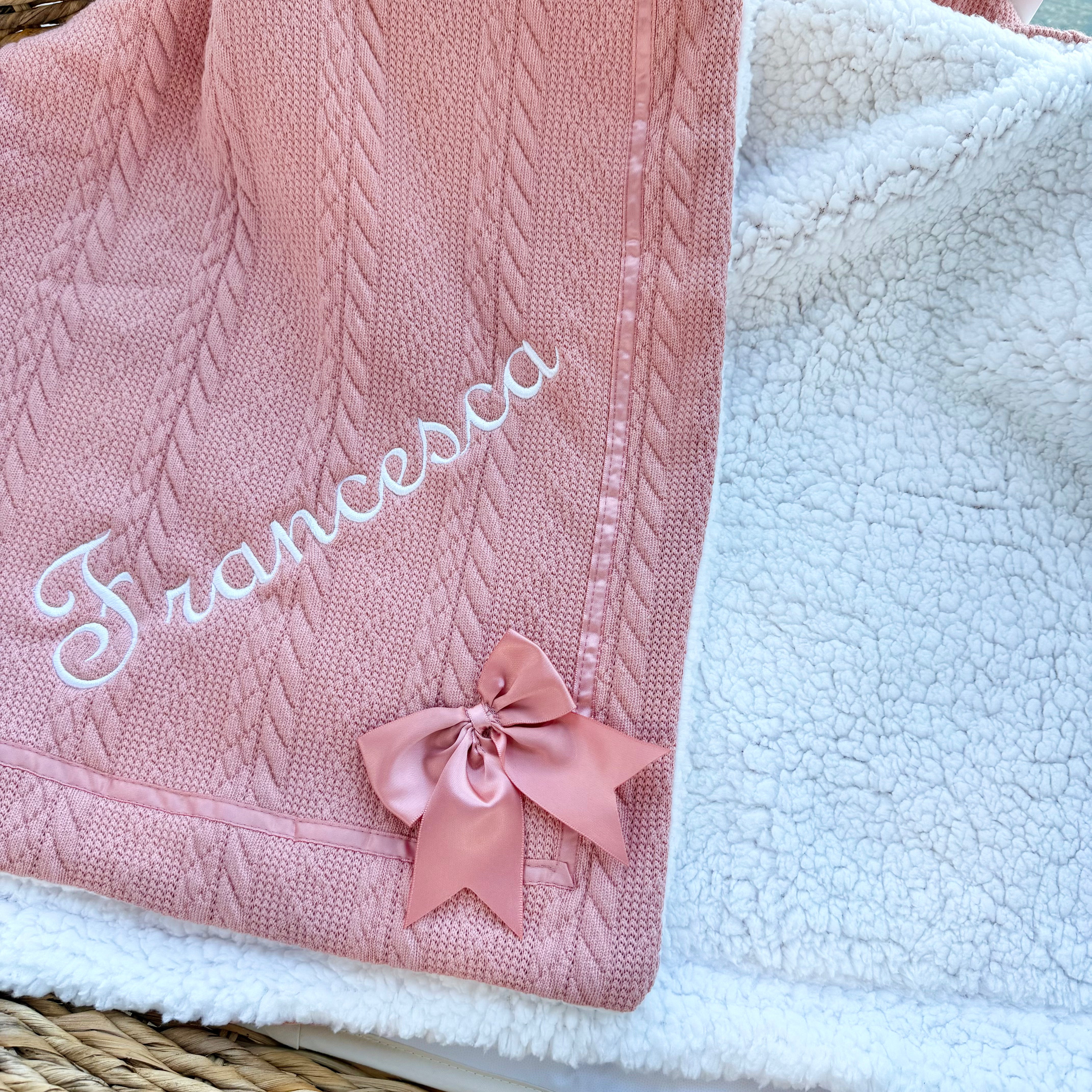 Chevron Knit Wrap Blanket with Satin Bow - Rose
