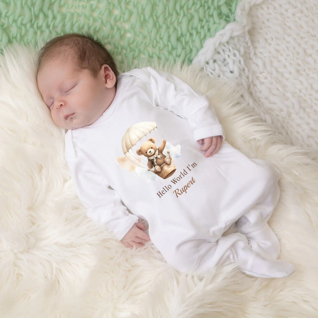 'Hello World I'm...' Unisex Bear In Balloon