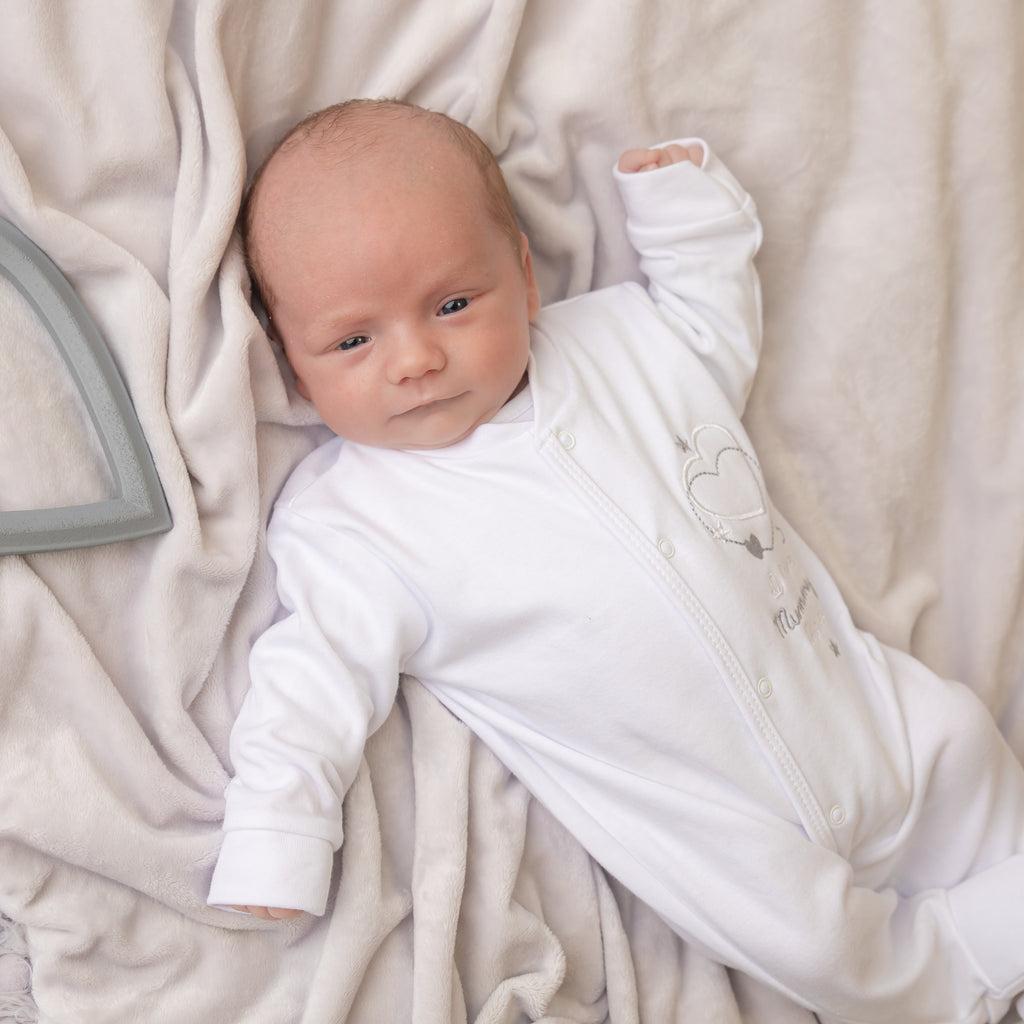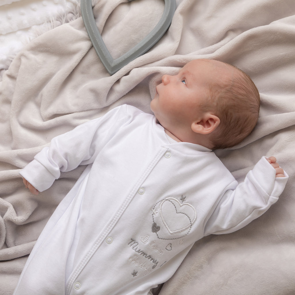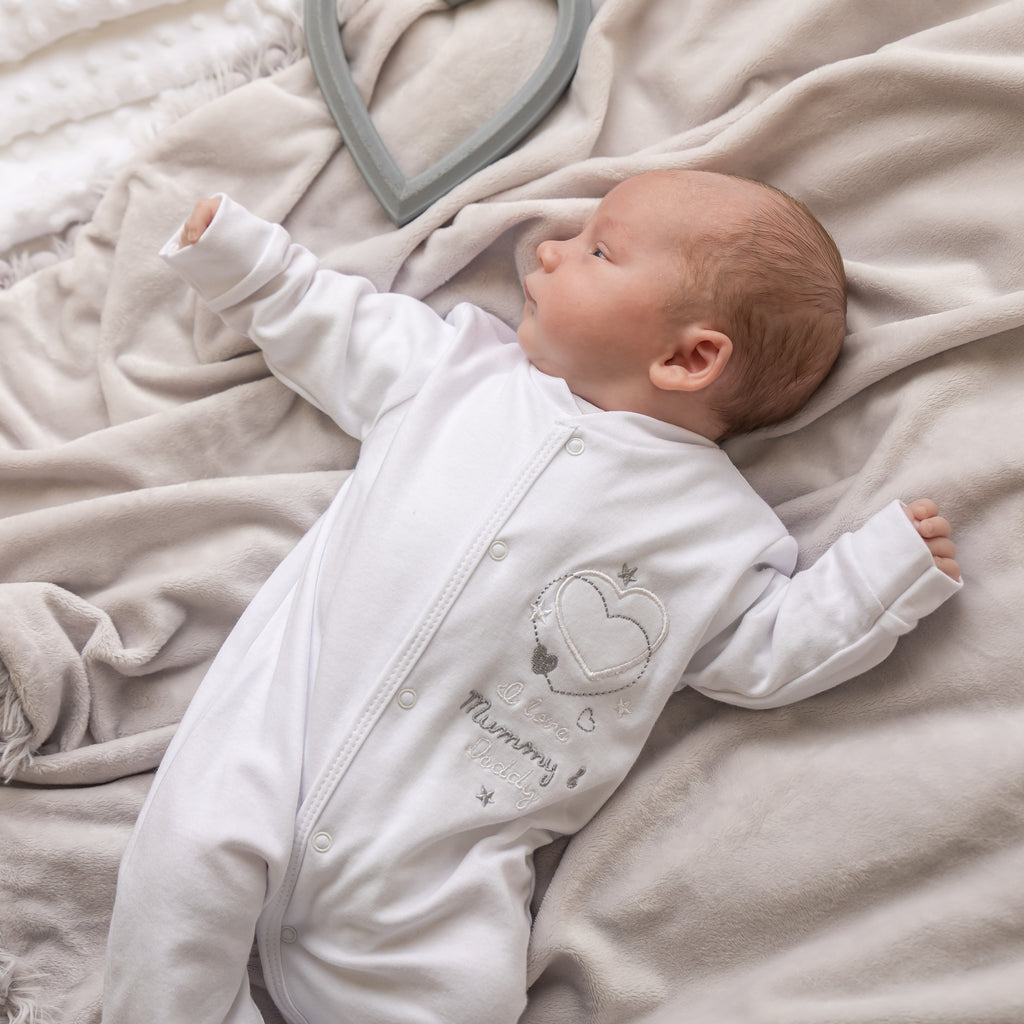 'I Love My Mummy & Daddy' White Cotton Sleepsuit