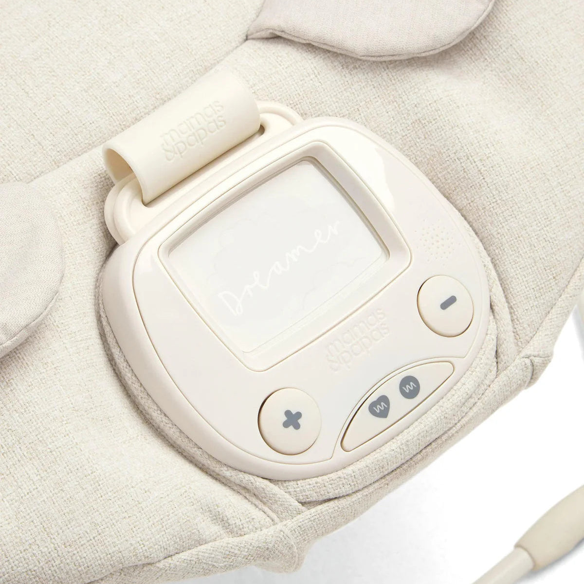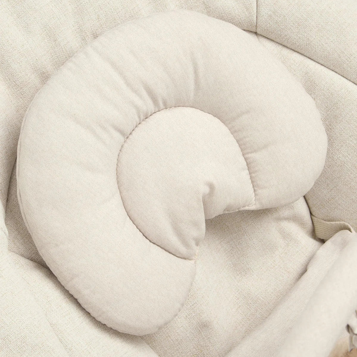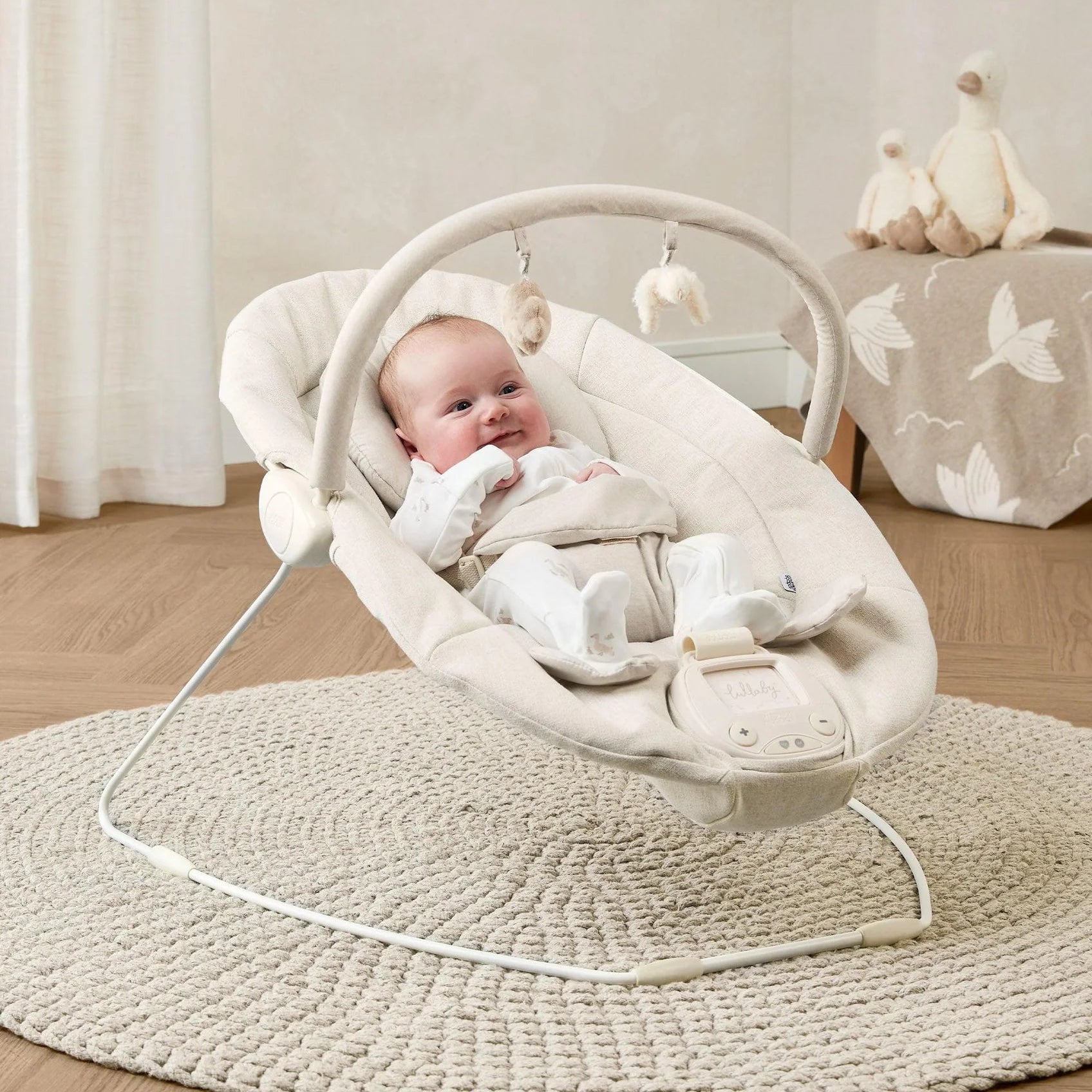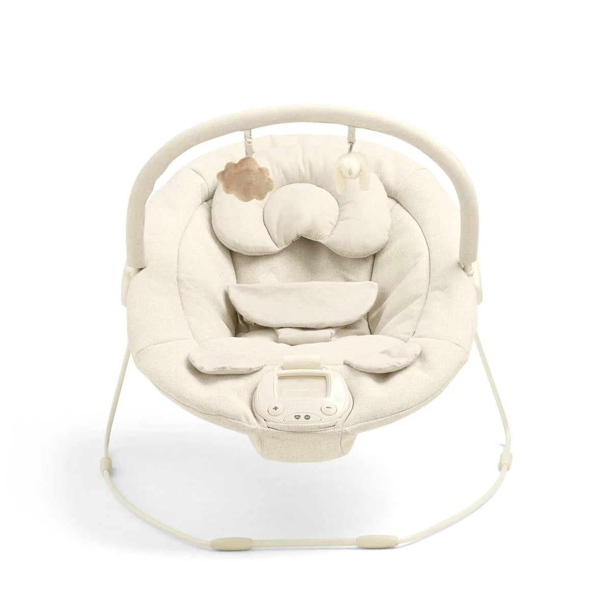 Find the perfect playlist for naptime with Apollo’s music book insert — just place it in the bouncer to choose from four soothing lullabies. Gentle bounce or vibrate settings mimic mum’s heartbeat to help baby relax and drift off. The spacious, oval-shaped seat has a head hugger pillow for newborn support, while the three-point harness and non-slip feet keep baby secure. A removable toy bar with three interactive toys adds extra entertainment, and simple controls make it easy to use!