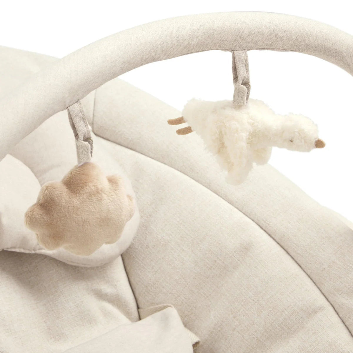 Enjoy over five minutes of high-quality lullabies to help your little one settle peacefully. Finished in a warm neutral shade, with Duck and Cloud Toys, adding a stylish touch to your baby’s relaxing space.
