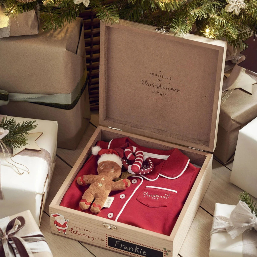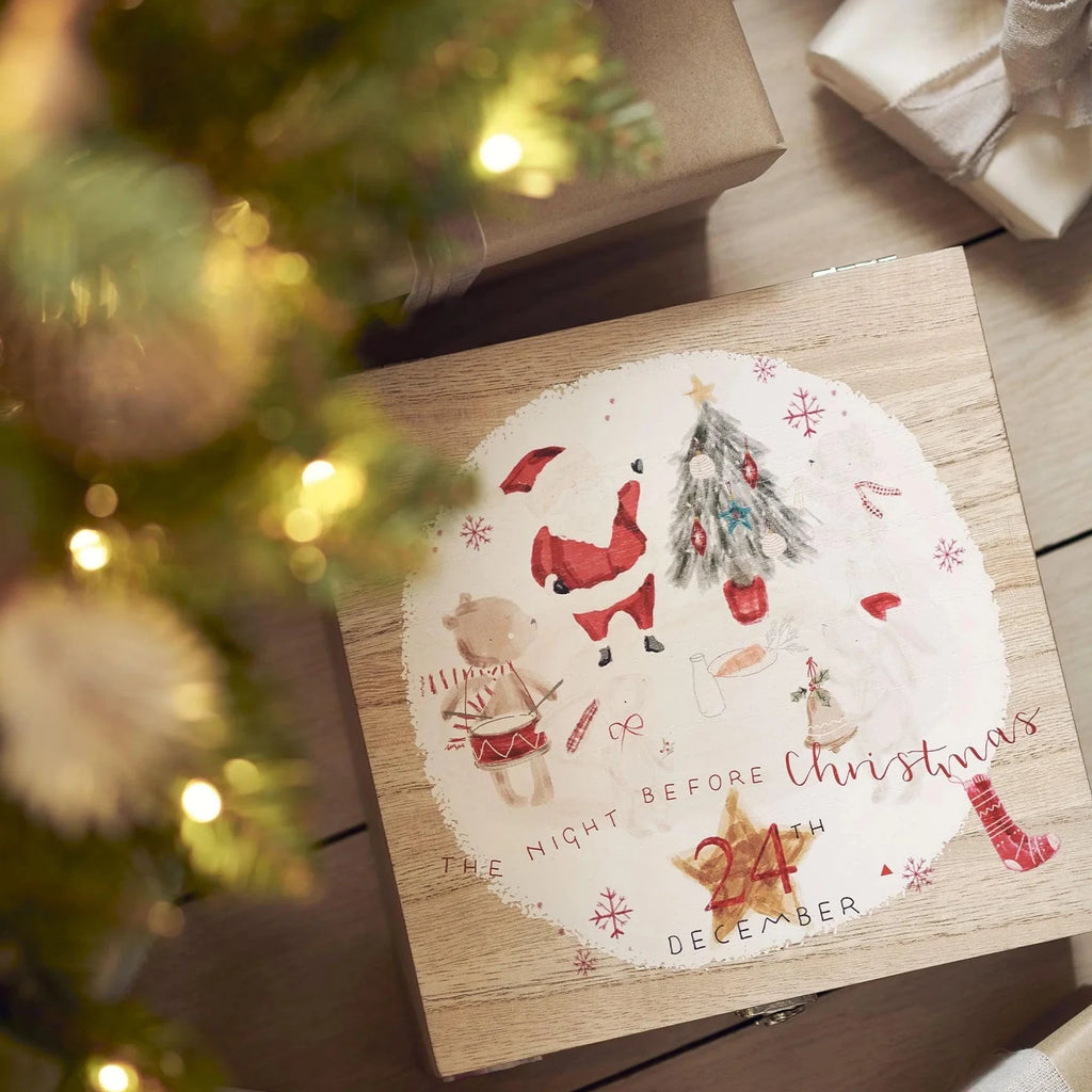 Bring extra excitement to the most magical night of the year with our Christmas Eve Box. Beautifully illustrated, this hinged-lid wooden box is designed to hold a special early gift for them to open ahead of Santa’s visit. Fill it with fun festive treats like a storybook, cosy pyjamas, hot chocolate set, or a cute cuddly toy to create a pre-Christmas moment they’ll always remember.