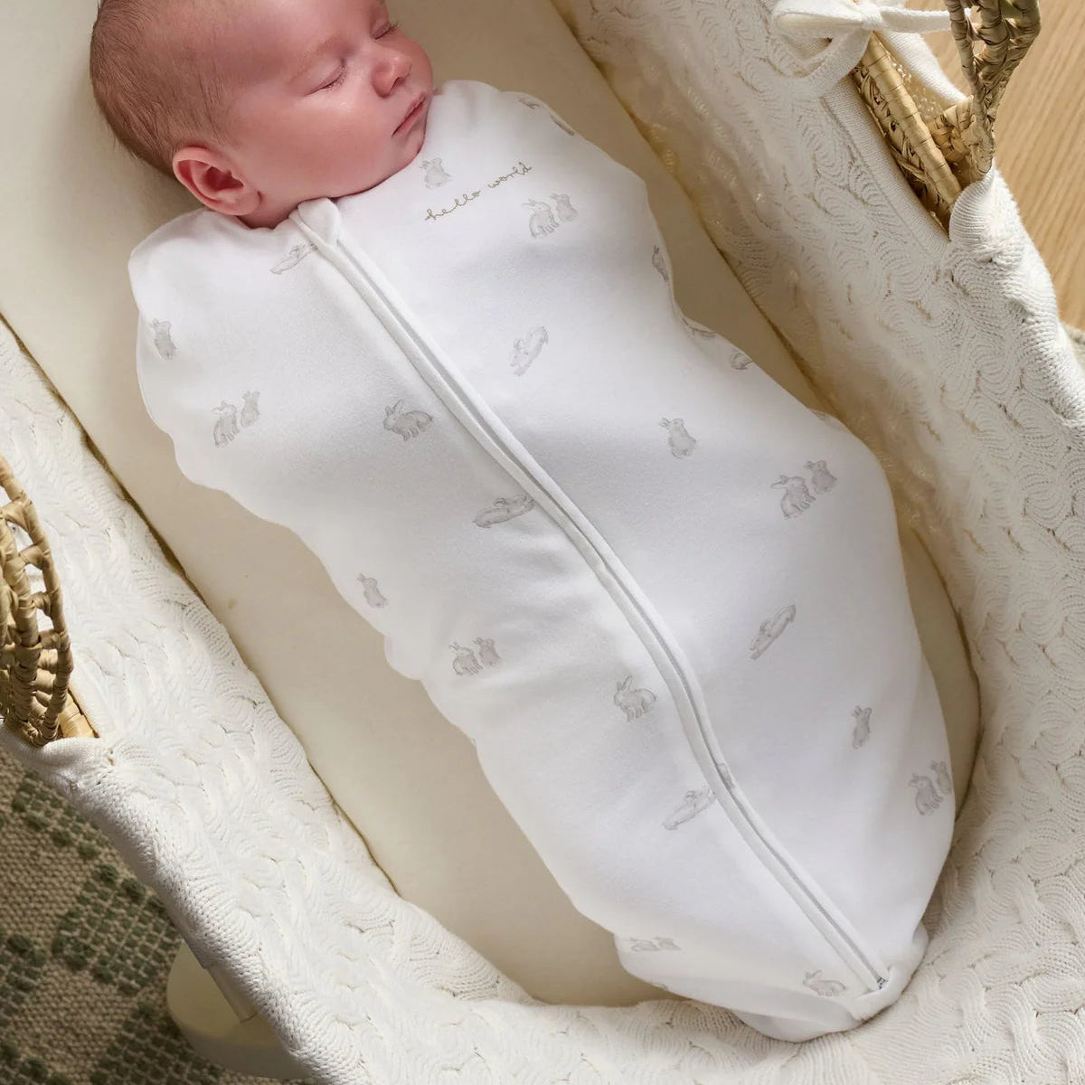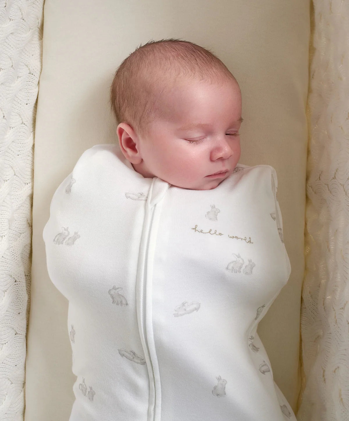 Help your little one develop positive sleep habits from day one with Mamas & Papas's thoughtfully designed Dreampod Swaddle. Inspired by how babies sleep best, the cocoon-like swaddle mimics the snug, secure feeling of the womb and calms startle reflexes to encourage self-soothing and longer, deeper sleep. Crafted in soft, breathable fabric for a healthy night’s sleep, it’s finished with a delicate bunny print and ‘Hello World’ embroidery on the chest.