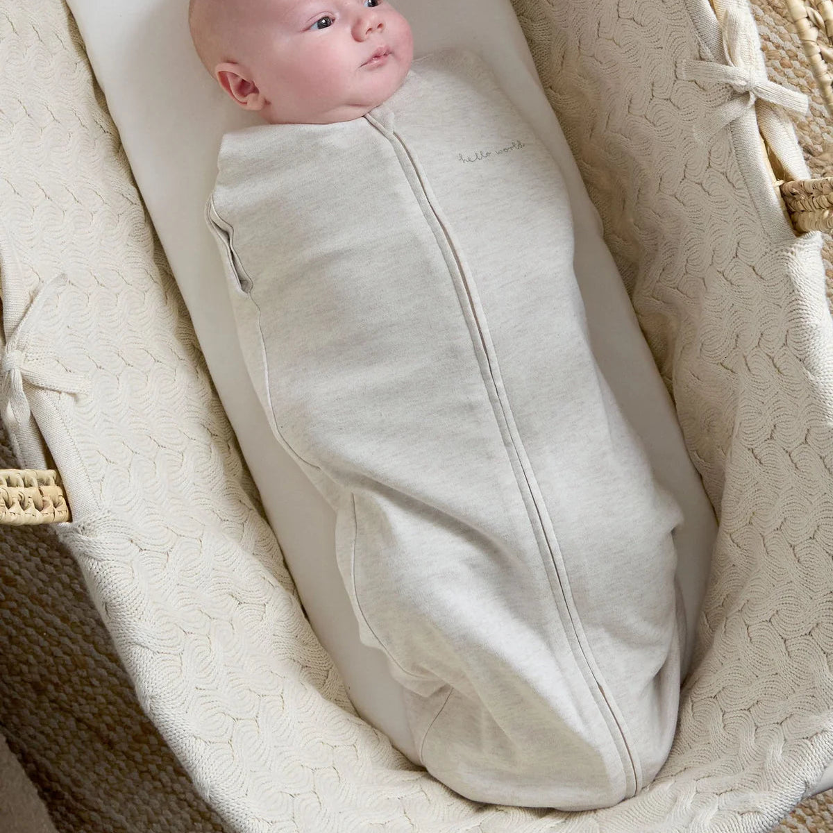 Help your little one develop positive sleep habits from day one with Mamas & Papas's thoughtfully designed Dreampod Swaddle. Inspired by how babies sleep best, the cocoon-like swaddle mimics the snug, secure feeling of the womb and calms startle reflexes to encourage self-soothing and longer, deeper sleep. Crafted in soft, breathable fabric for a healthy night’s sleep, this neutral oat-coloured design is finished with cute ‘Hello World’ embroidery on the chest.