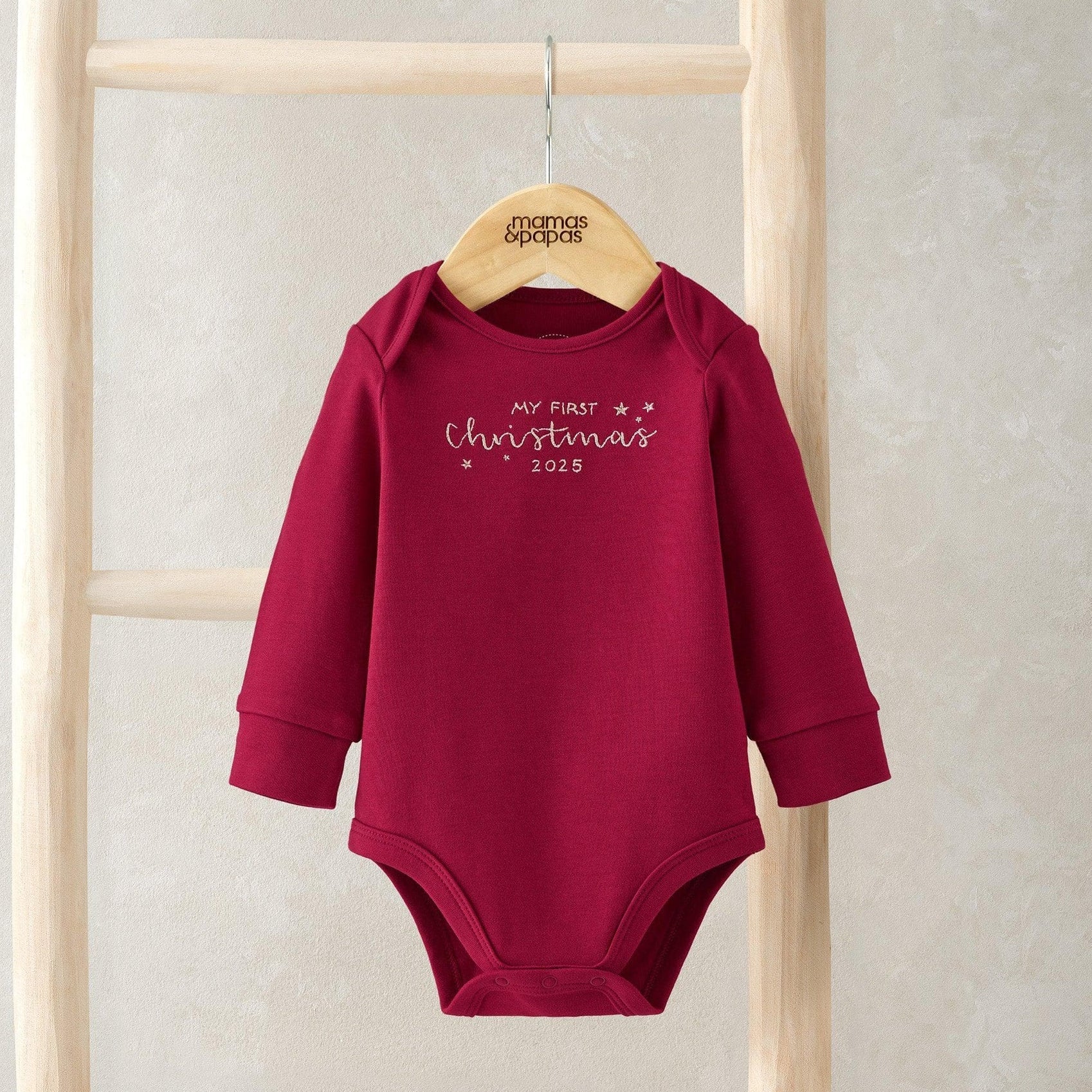 New in for the festive season from Mamas & Papas! Mark their first festive season with this classic Christmas red bodysuit.