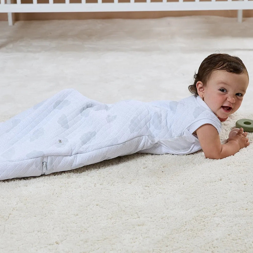 To keep baby at a regulated temperature, the breathable mesh panels on the back of the neck and torso enable ventilation so that air can flow. It features enough space for the baby to move and is certified hip-healthy. The Cuddle To Sleep Bag 2.5 tog is ideal for use in rooms between 14°C – 22°C with appropriate clothing as suggested.