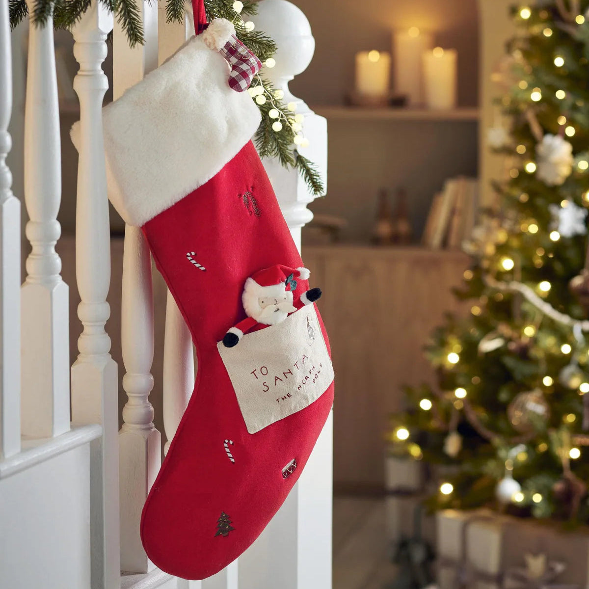 Whether it’s hung on the fireplace, staircase, or at the end of their bed, this charming Santa stocking from Mamas & Papas is full of festive magic. Crafted from luxe red velour with a soft faux-fur trim and matching hanging ribbon, it’s packed with playful details. The sweetest touch of all? A mini Santa toy tucked inside the envelope pocket, ready to collect little ones’ gift lists for the North Pole.