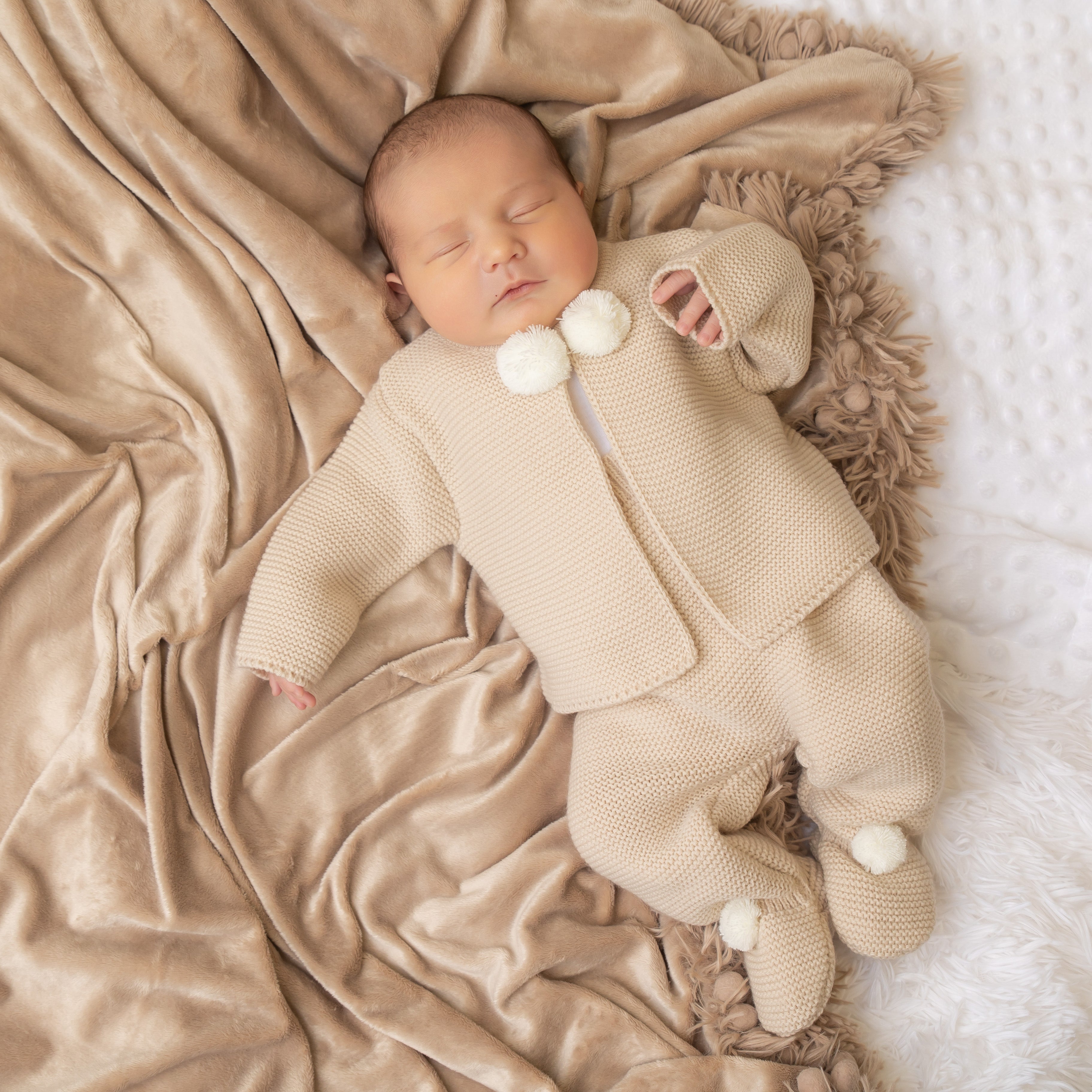 Whether you're dressing your child up for a special occasion or just looking for a cosy outfit for everyday wear, our Taupe Knitted Pom Pom Two-Piece Set is a must-have addition to your little one's wardrobe. It's cute, comfortable, and sure to become a wardrobe essential in no time.